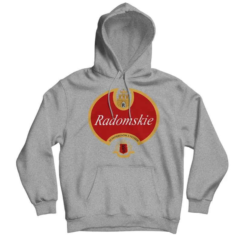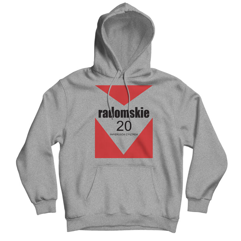 Bluza z kapturem Radomskie z filtrem Radomskie – papierosy, które paliła połowa sąsiadów z klatki i każdy kierownik w zakładzie pracy. Smakowały tak, jak wyglądały: mocno, konkretnie i bez zbędnych ceregieli. Dziś już mało kto pamięta, że kiedyś paczka Radomskich potrafiła załatwić więcej niż kartka na mięso. Nasza bluza przypomina czasy, kiedy dym unosił się…