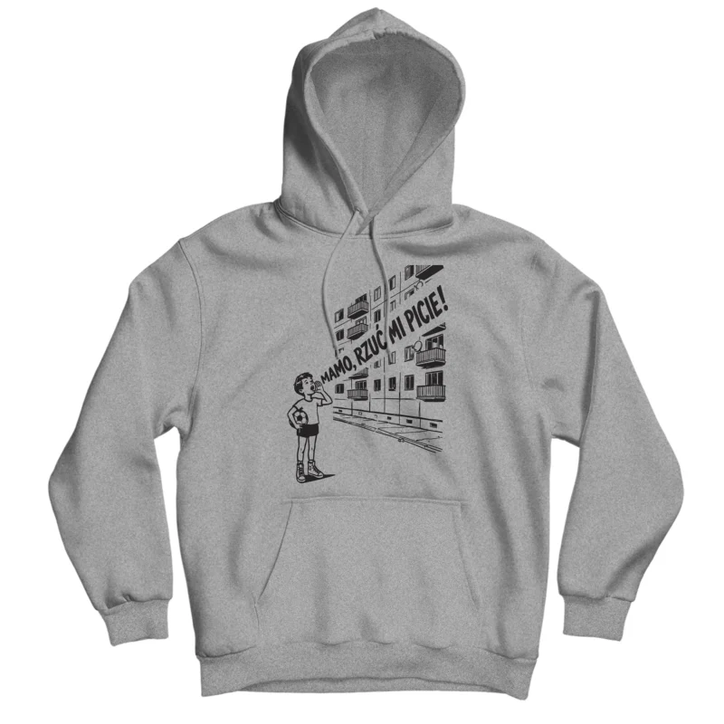 Poczuj klimat czasów, gdy największym zmartwieniem było to, czy mama usłyszy Cię z balkonu. Ta bluza to hołd dla kultowego okrzyku „Mamo, rzuć mi picie!”, który zna każdy, kto dorastał między trzepakiem, a boiskiem z asfaltu.