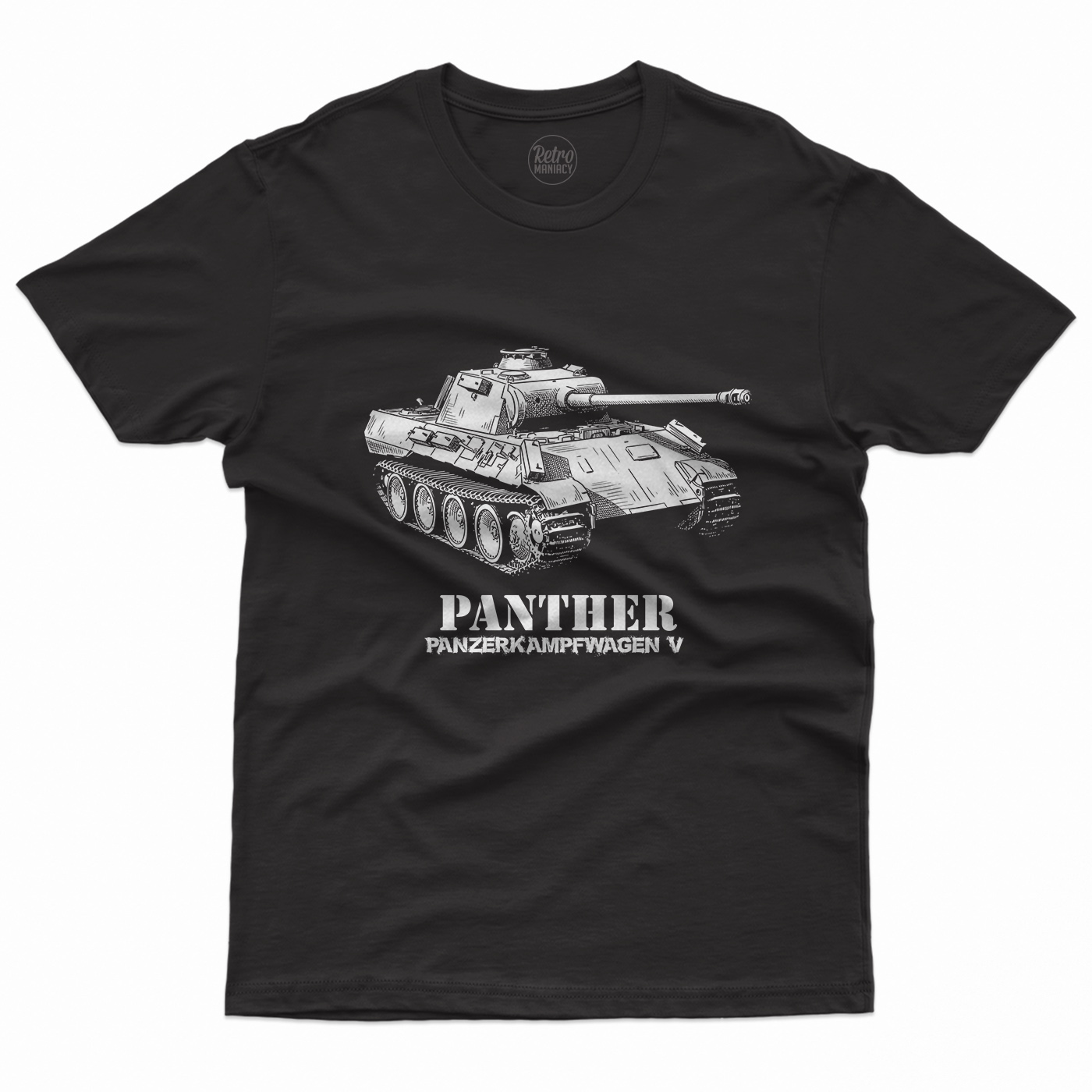 Bawełniana koszulka z sylwetką czołgu Panzerkampfwagen V Panther. Dostępna w 3 kolorach, trwała jakość nadruku i dbałość o detale pancerza. Idealna dla pasjonatów broni pancernej.