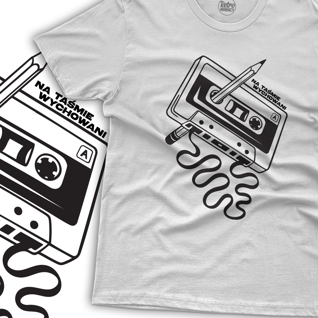Nie na YouTube, nie na streamie, nie na klipach w pionie. Tylko na kręcącej się kasecie, przewijanej ołówkiem po sto razy gdy wciągnął ja magnetofon, aż taśma była bardziej zjechana niż trampki po rowerze. Ta koszulka to wspomnienie. Dla tych, którzy nie muszą tłumaczyć, co to znaczy „strona B”, którzy pamiętają zapach plastiku, kliknięcie „PLAY” i szum, zanim poleciał bit. Noś to jak odznakę. Jak wspomnienie dzieciństwa, które nie potrzebowało zasięgu, żeby grało do późna. Dla tych, co nie przewijali życia – tylko taśmę.