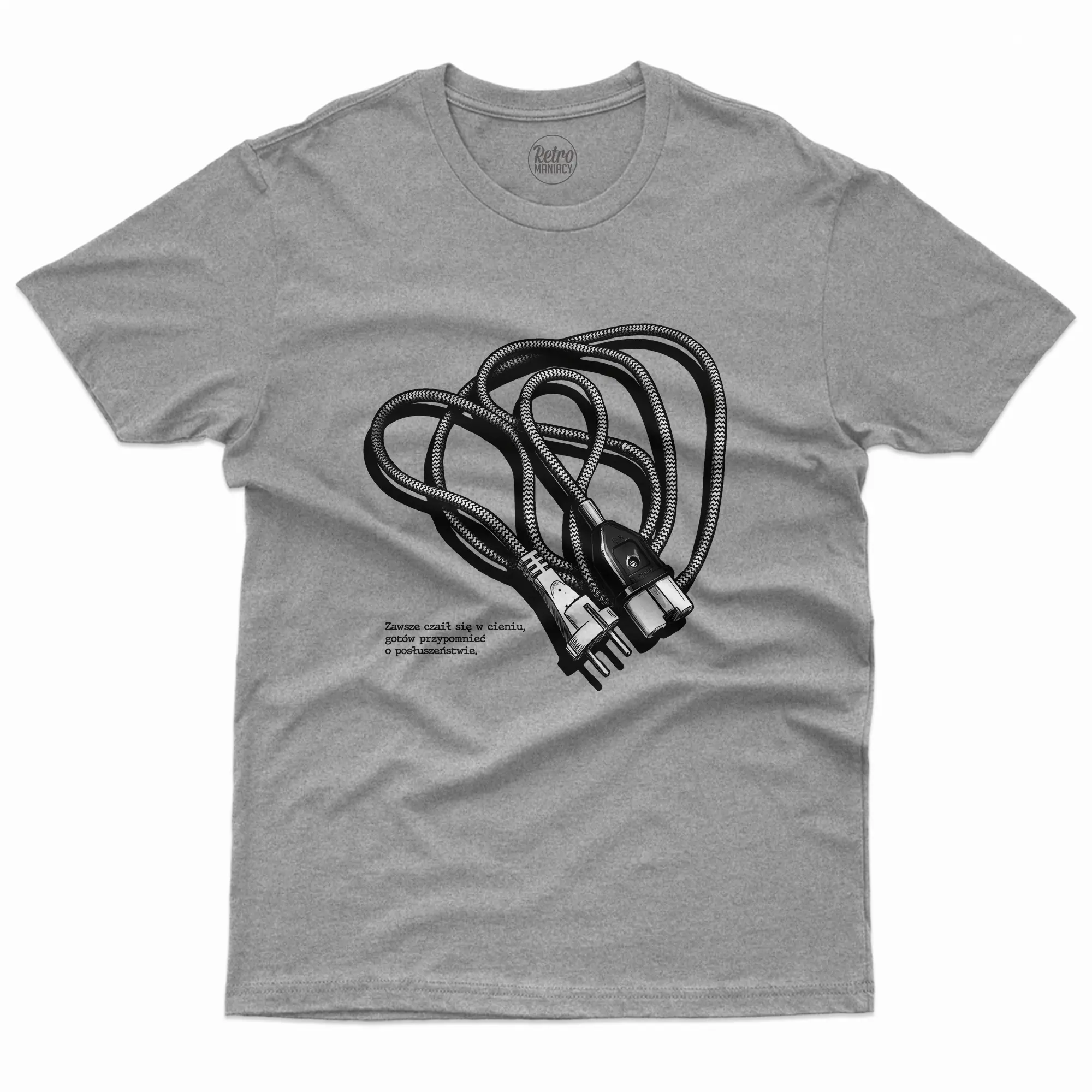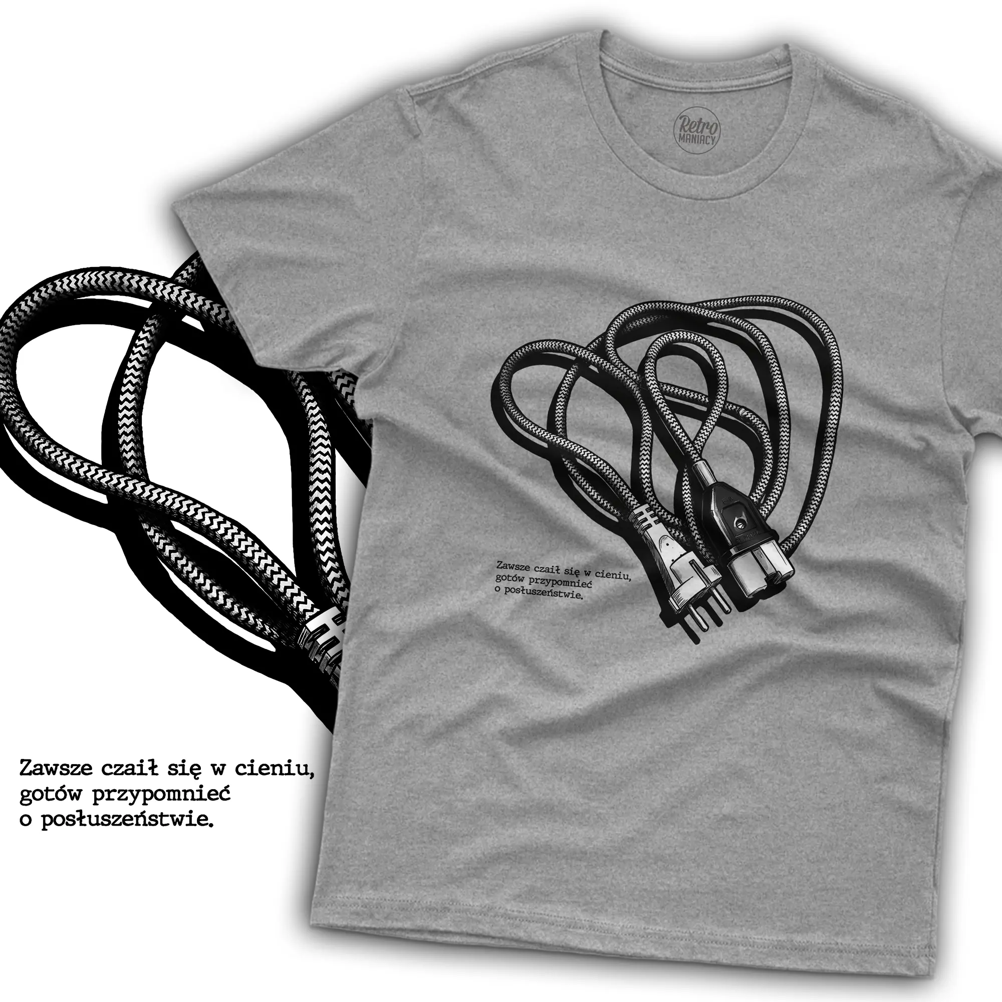 W czasach PRL-u i lat 90. niektóre przedmioty miały duszę, a inne… miały moc wychowawczą. Kabel od prodiża to absolutna legenda, która w hierarchii domowych straszaków stała ramię w ramię z mitycznym klapkiem mamy. Charakterystyczny gruby oplot, masywne wtyczki i ta specyficzna sztywność sprawiały, że na sam jego widok każdy młody człowiek natychmiast przypominał sobie o nieodrobionych lekcjach. Ta koszulka to nostalgiczna podróż do czasów, gdy prodiż był centrum niedzielnego obiadu, a jego przewód zasilający – najskuteczniejszym systemem wczesnego ostrzegania. Projekt oddaje surowy, techniczny wygląd tego „narzędzia”, które kiedyś budziło szczery respekt. To idealny wybór dla tych, którzy przetrwali złotą erę polskiego AGD i chcą z przymrużeniem oka przypomnieć innym, co to znaczy prawdziwa „bezprzewodowa” komunikacja z rodzicami z kablem w zasięgu ręki.