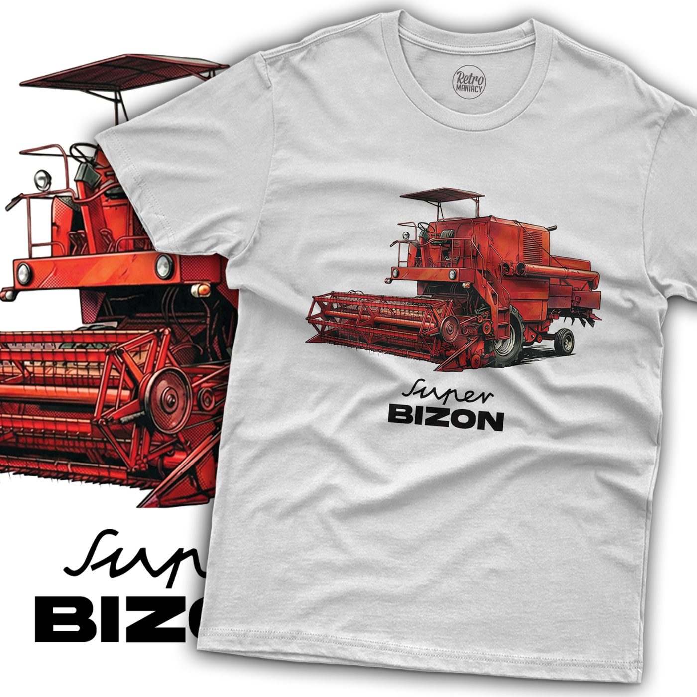 • Koszulka męska z kombajnem Super Bizon zapakowana jest w ekologiczne kartonowe pudełko, idealnie na prezent!